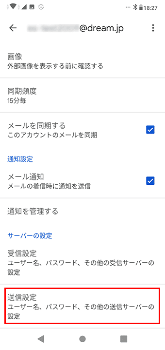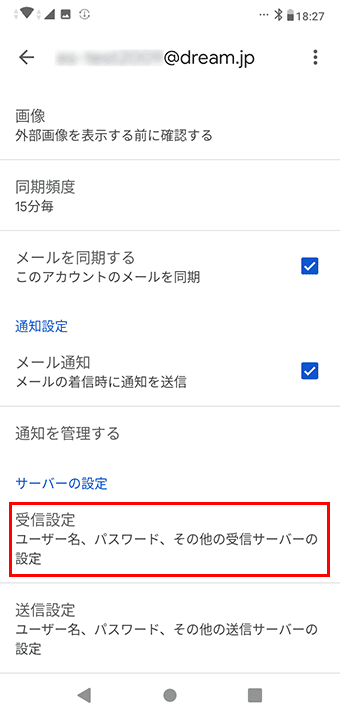 メール手動設定(POP)