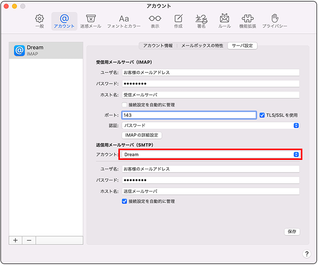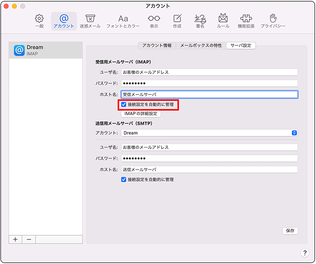 メール手動設定(IMAP)