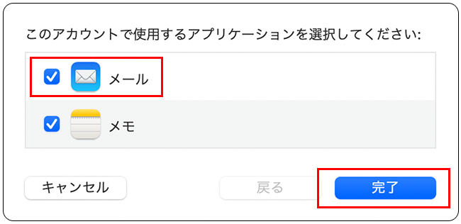 6 「メール」にチェックを入れ、「完了」をクリックします。