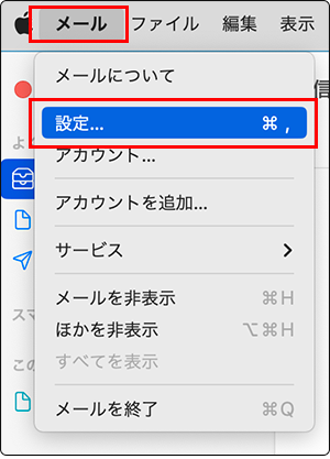 7 「メール」から「設定」を選択します。