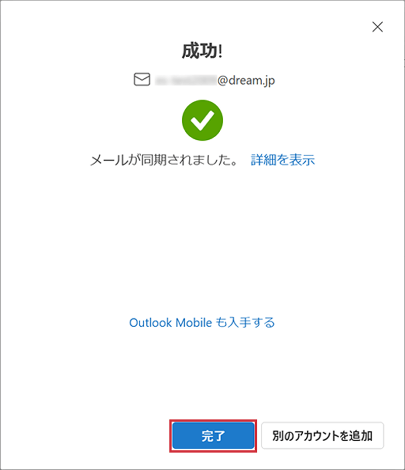 6 「完了」をクリックし設定を終了します。