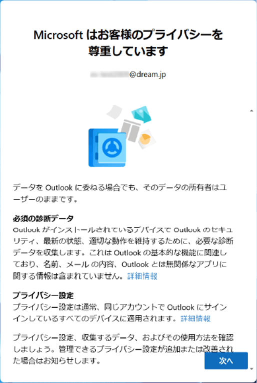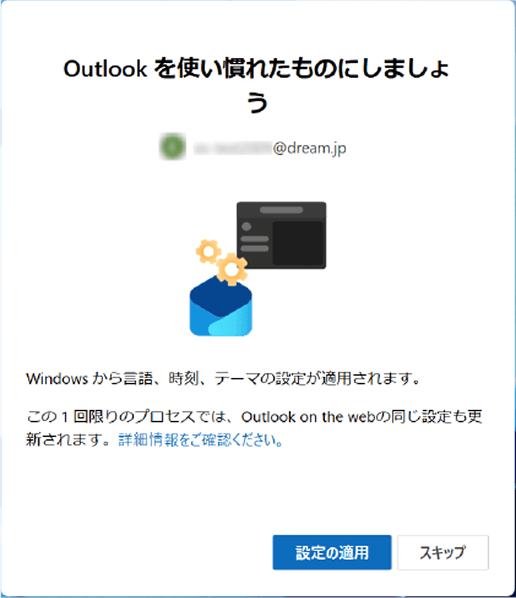 - 新しいOutlookへようこその画面が表示されない場合