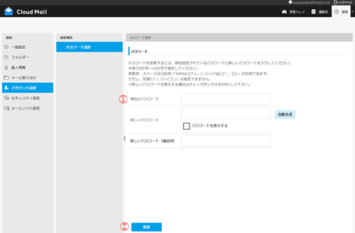 - 現在設定されているパスワードと新しいパスワードを入力します。
